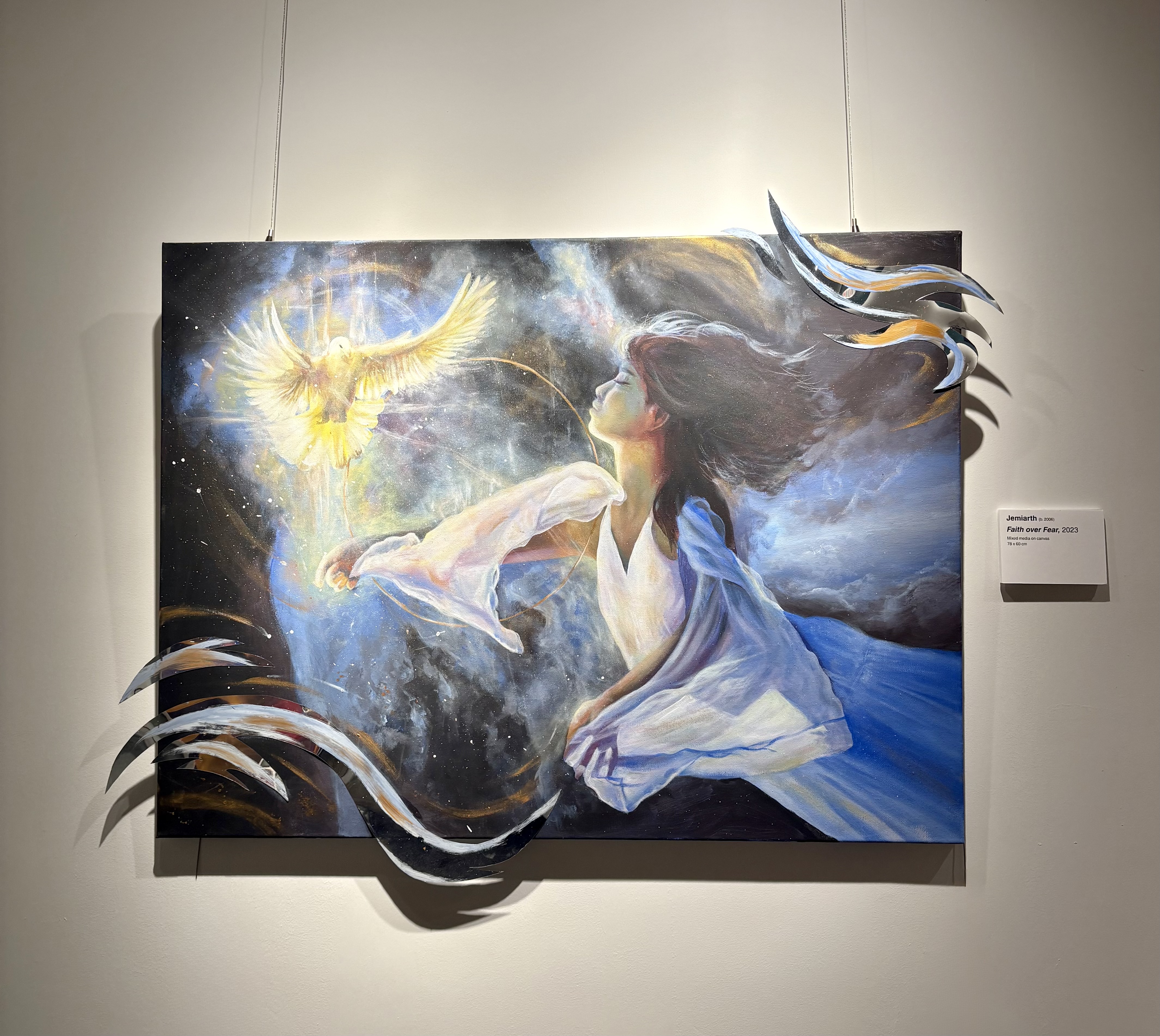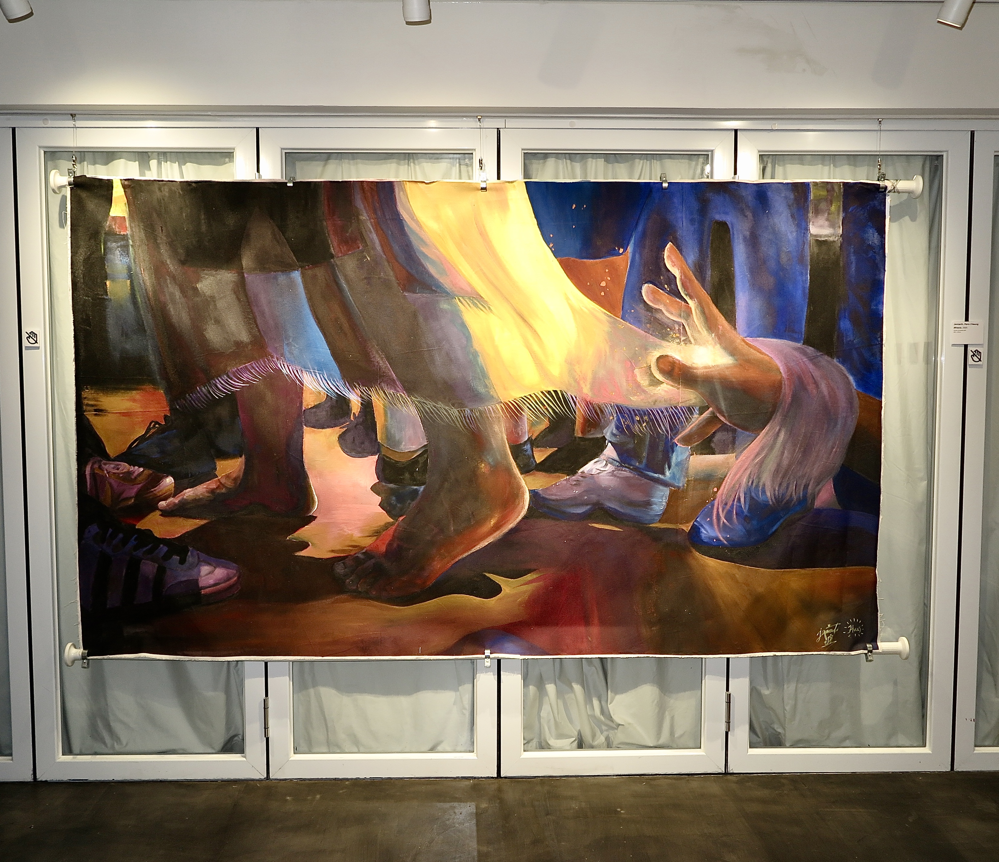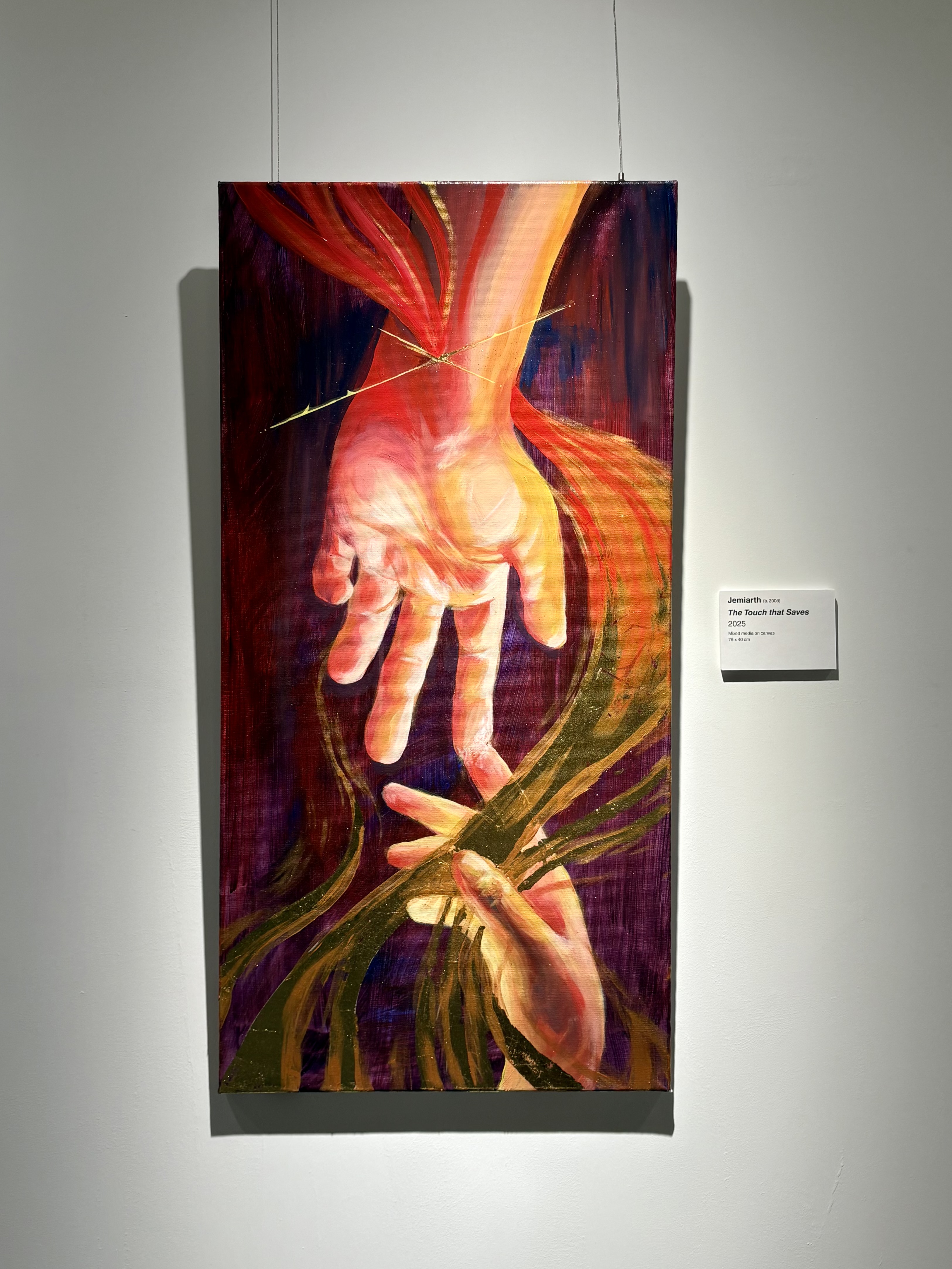 Depicting Healing as the artist was healing. Jemiarth placed an emphasis on the change of color and use of 3D elements to solidify her experiences of how He healed her family and burnouts . Using the story of the bleeding woman in Jesus’ healing ministry to highlight that healing is not simply physical, but transcends into the spiritual.