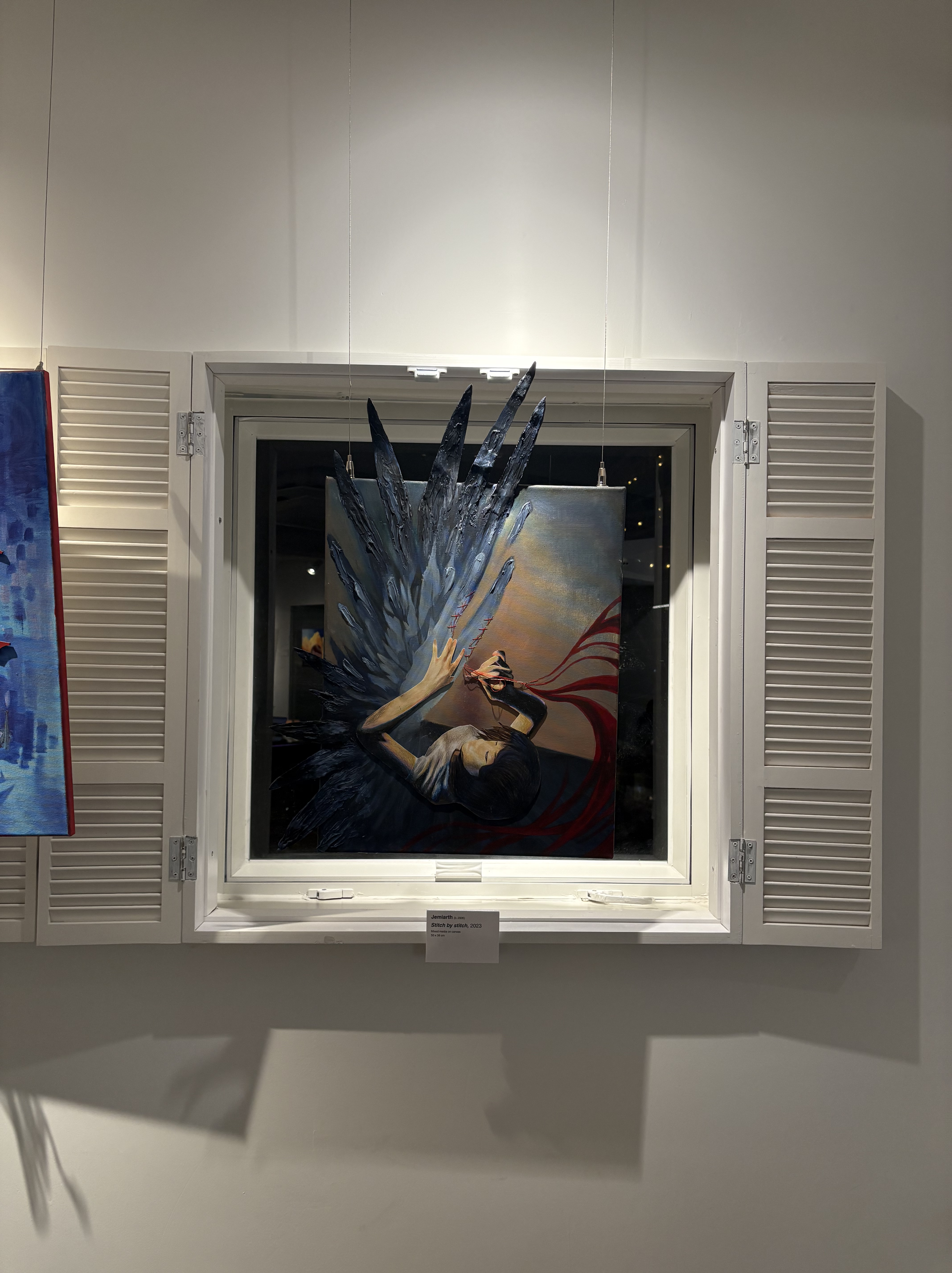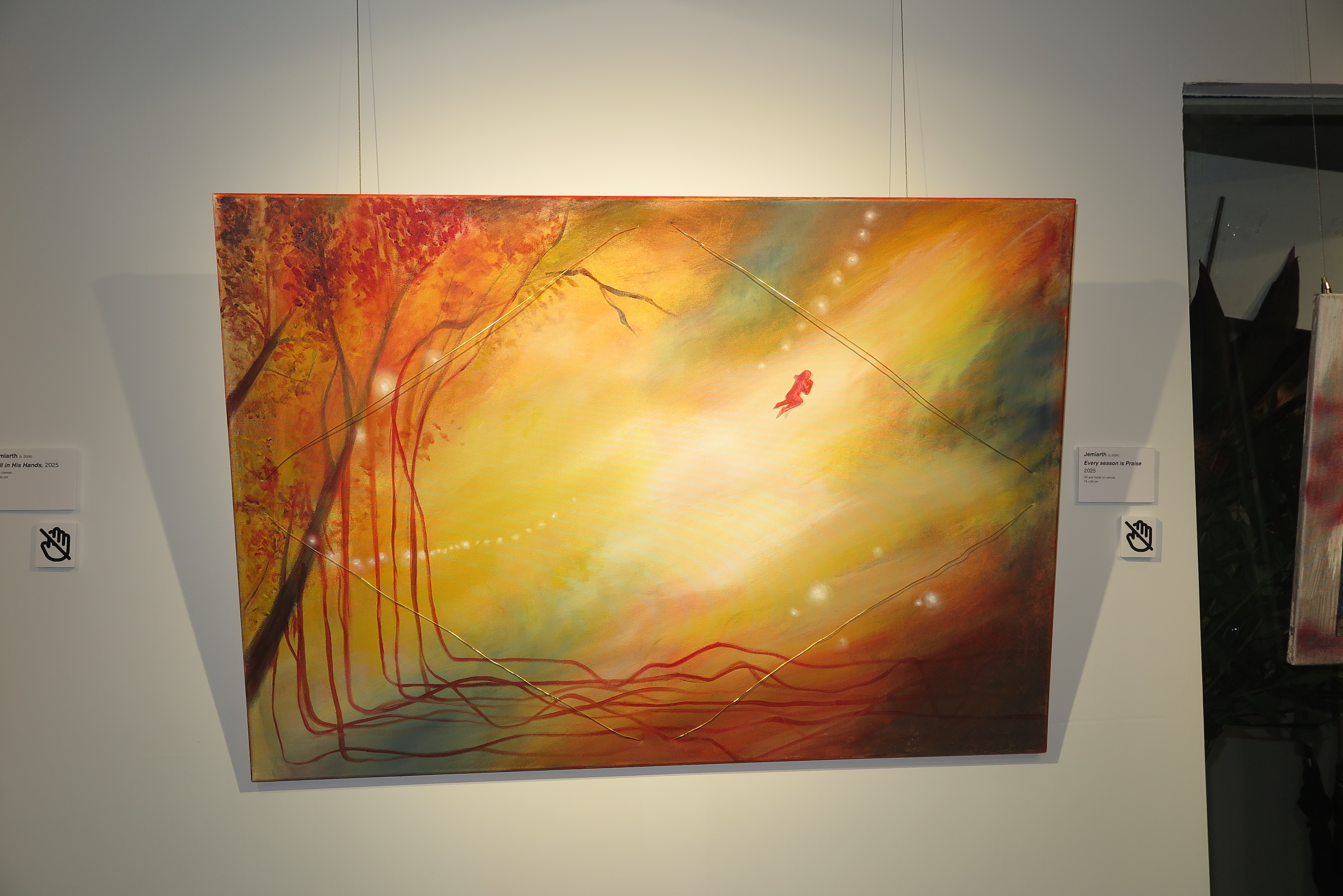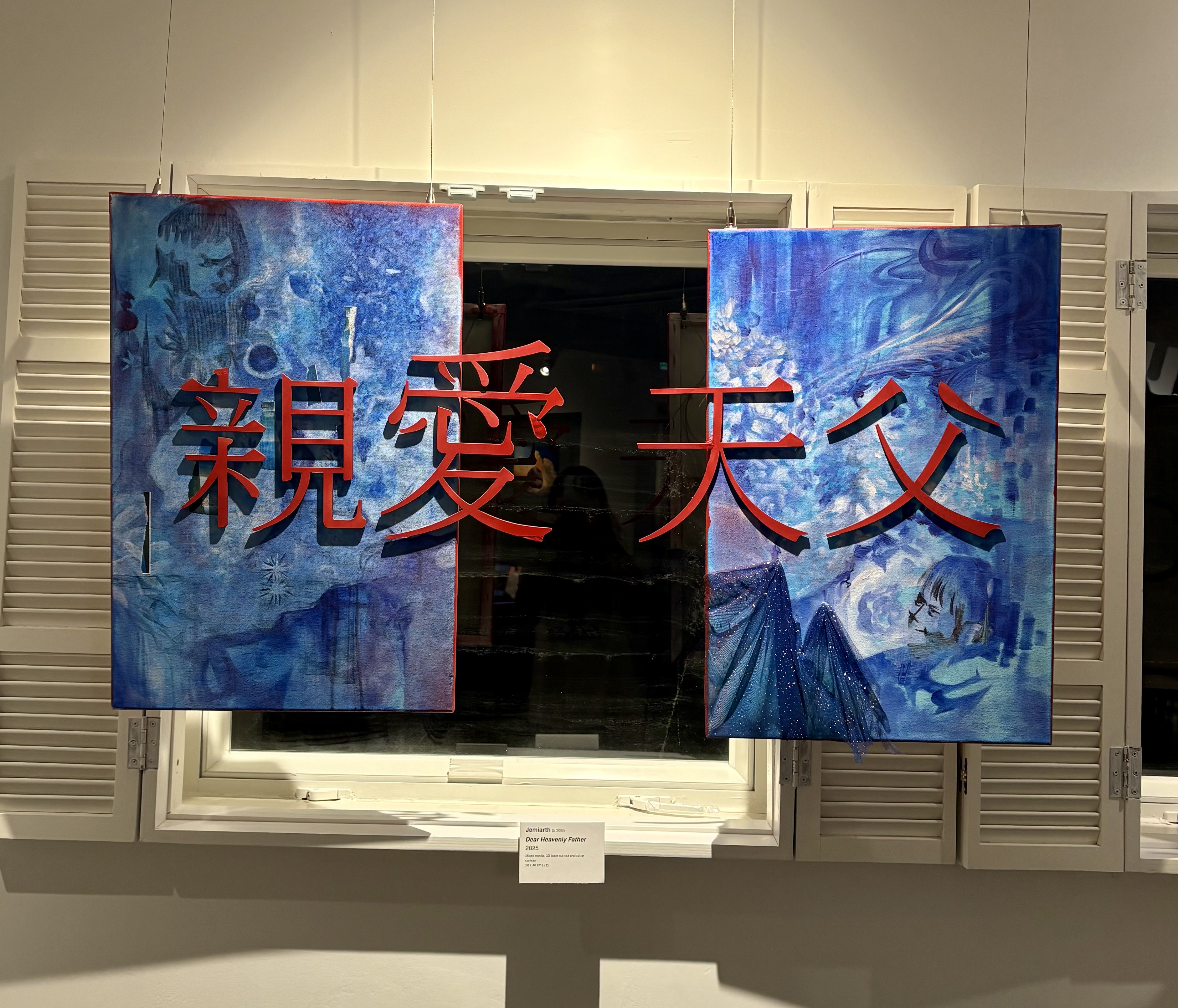 Depicting Healing as the artist was healing. Jemiarth placed an emphasis on the change of color and use of 3D elements to solidify her experiences of how He healed her family and burnouts . Using the story of the bleeding woman in Jesus’ healing ministry to highlight that healing is not simply physical, but transcends into the spiritual.